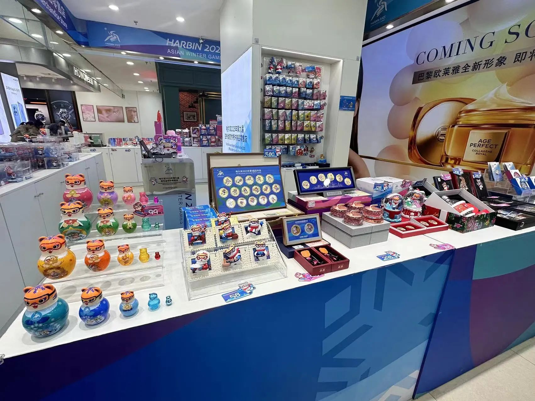 哈尔滨2025年第九届亚冬会官方特许零售店入驻哈尔滨新一百,吸引了众多运动爱好者、集章打卡者、赛事纪念品收藏者、游客们的目光。