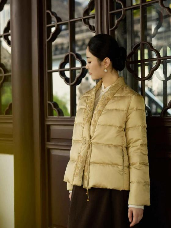 善护念24年秋冬新品上新,黄色系以“浮光跃金”为主题,以黄色为主色,点缀贵气的金色,以雅致的米白色和深棕色辅以沉静之美。香云纱、金银丝、立体绣,山水相间,中式写意温婉优雅。